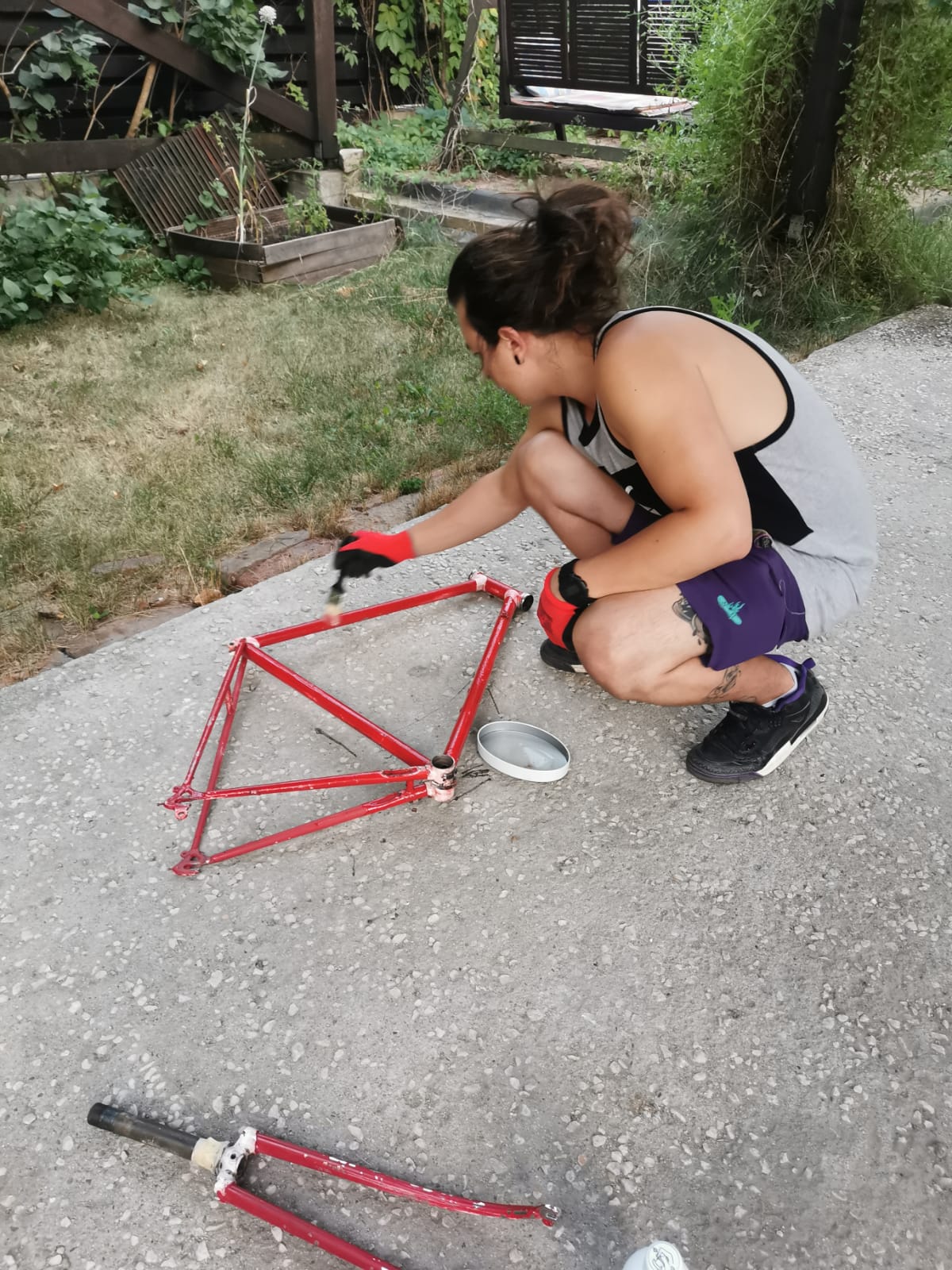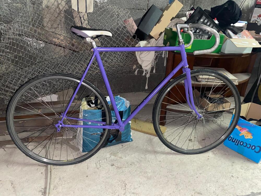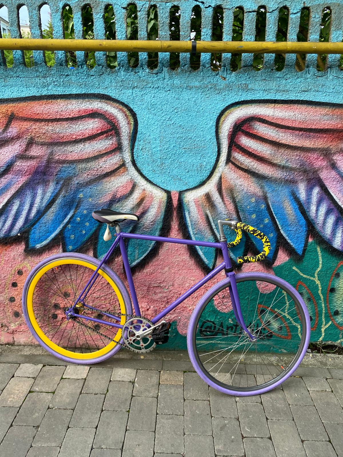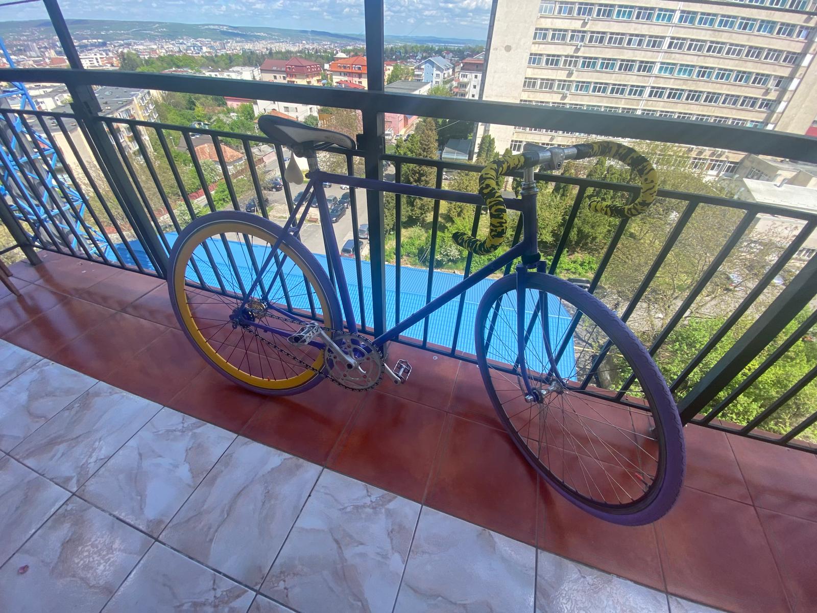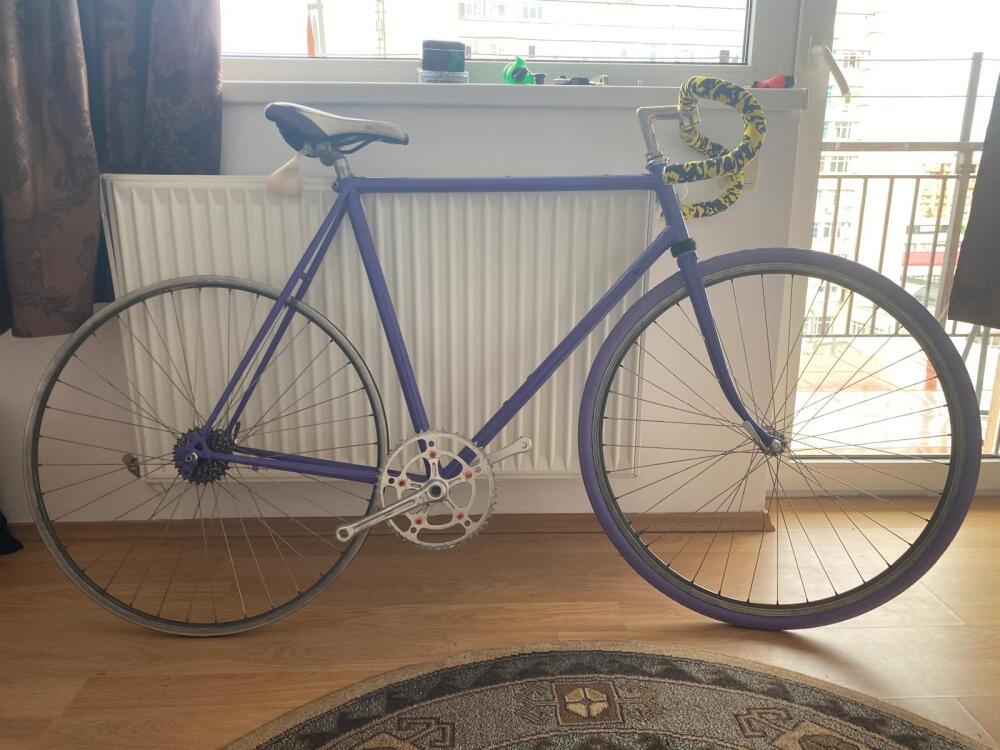 După finisarea cadrului într-un mov intens și adăugarea accentelor galben, am remontat totul, asigurând o funcționare perfectă prin lubrifiere și protecție anticorozivă. Rezultatul este o bicicletă cu personalitate, readusă la viață printr-o mentenanță corectă și multă pasiune!