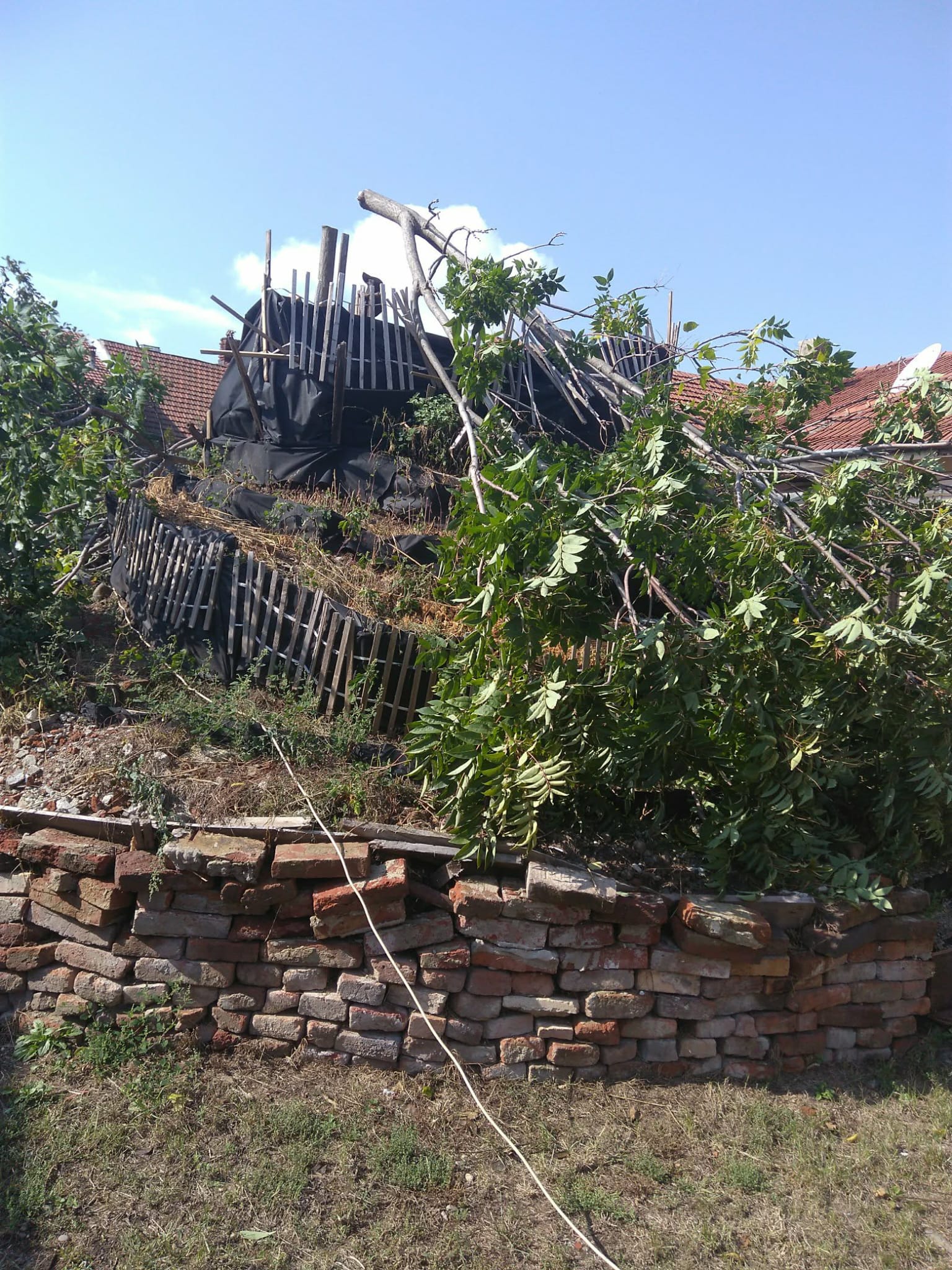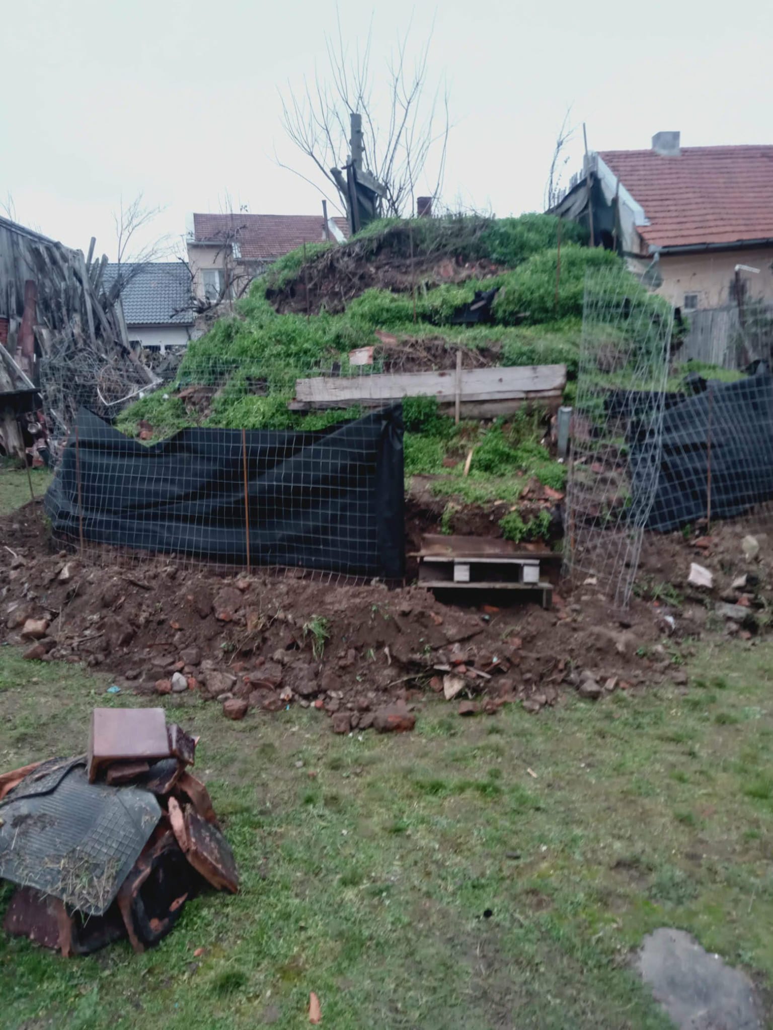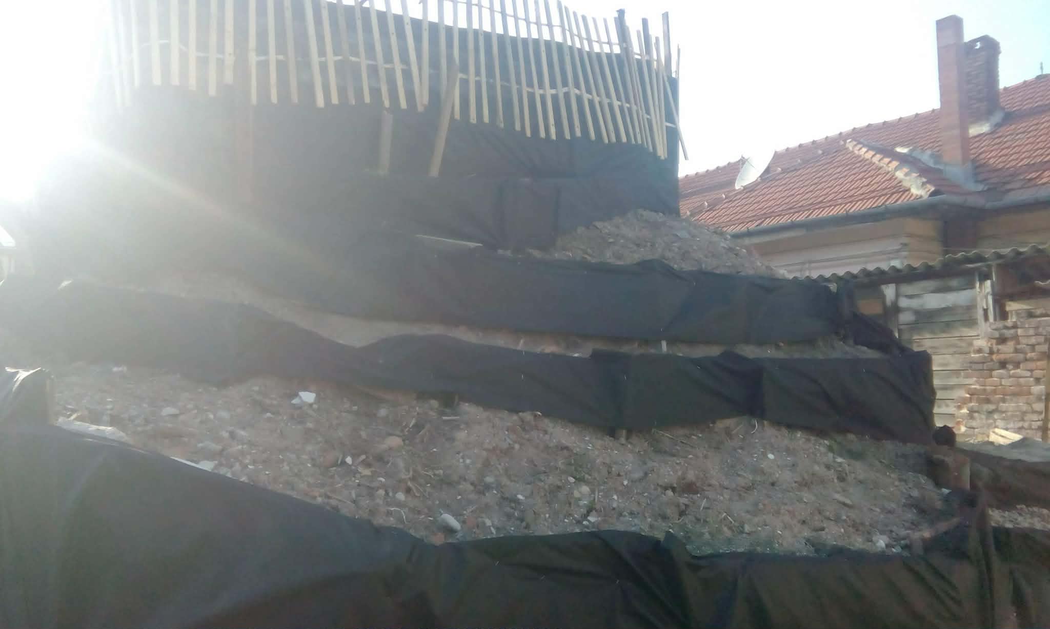 Cu excavatorul s-a adunat molozul pentru a-i reduce suprafața și de a-l înalța .