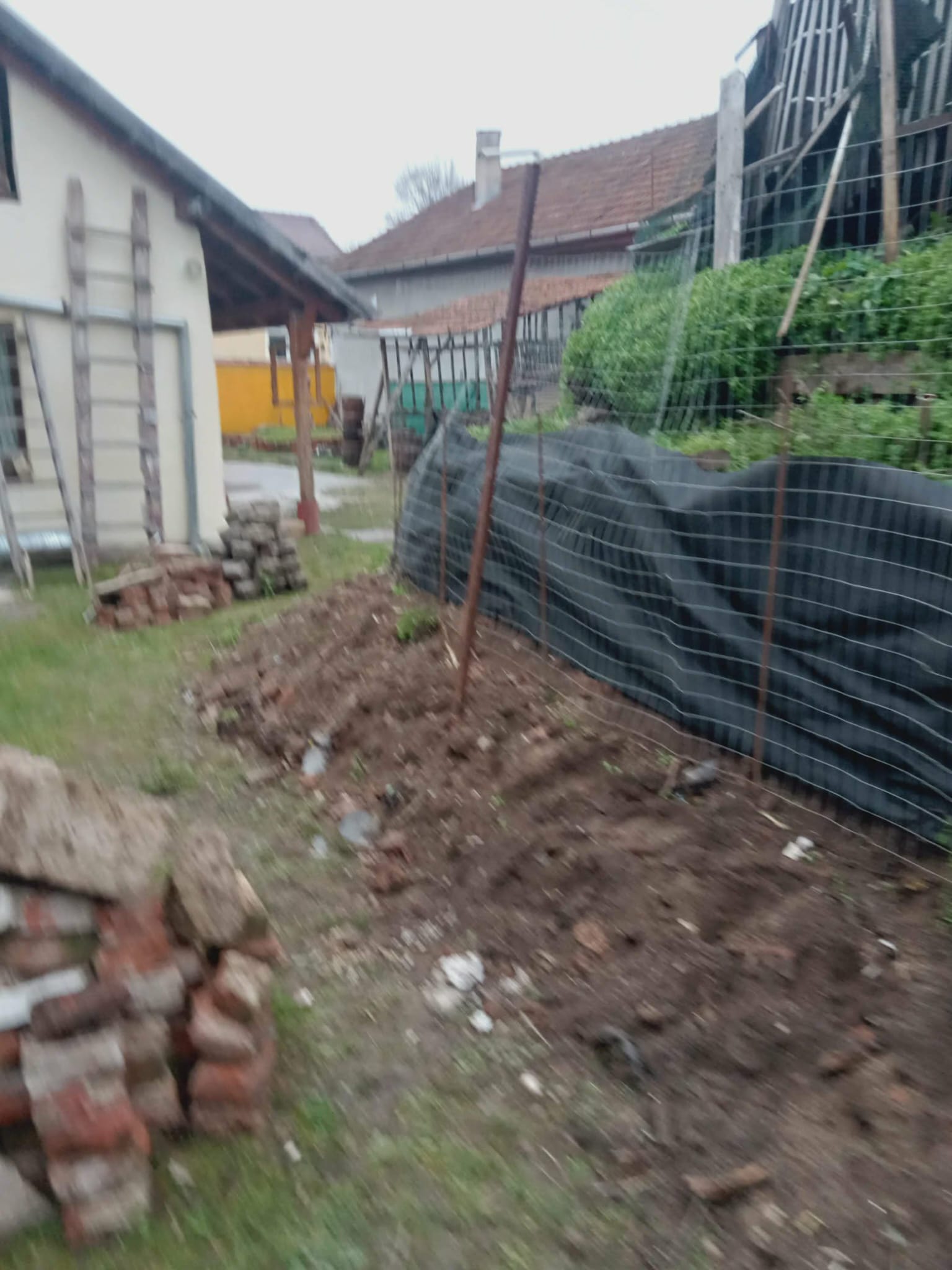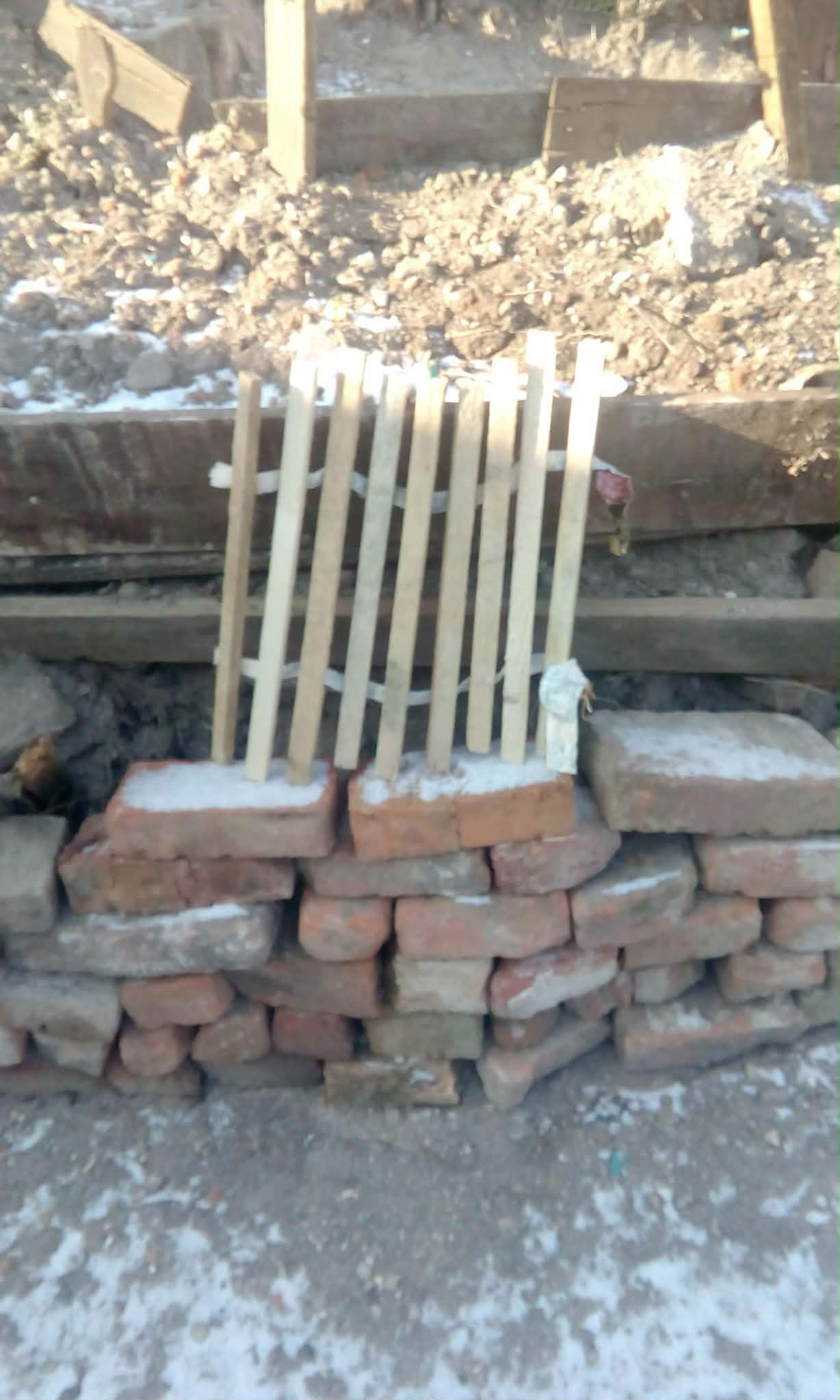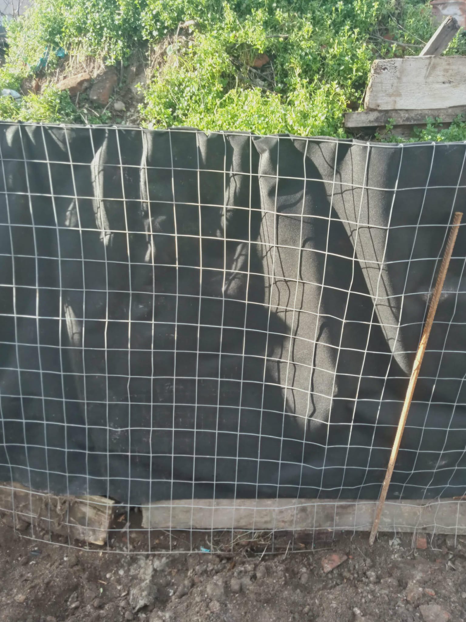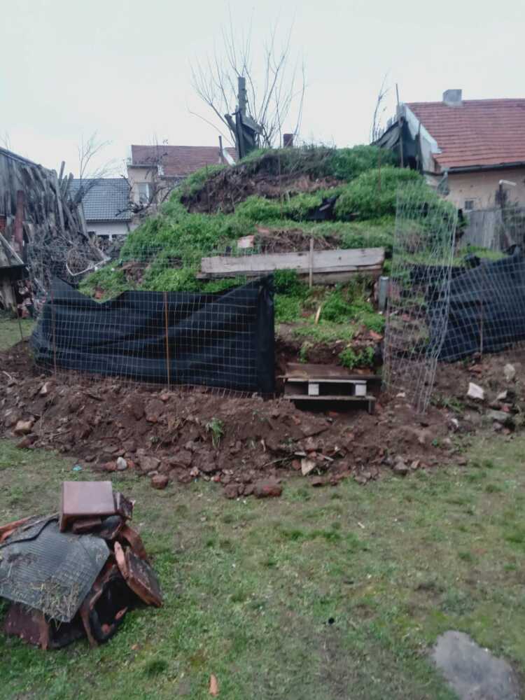 Manual, s-a început modelarea pământului cu lopata, fixat cu lemne și cărămizi din demolare.