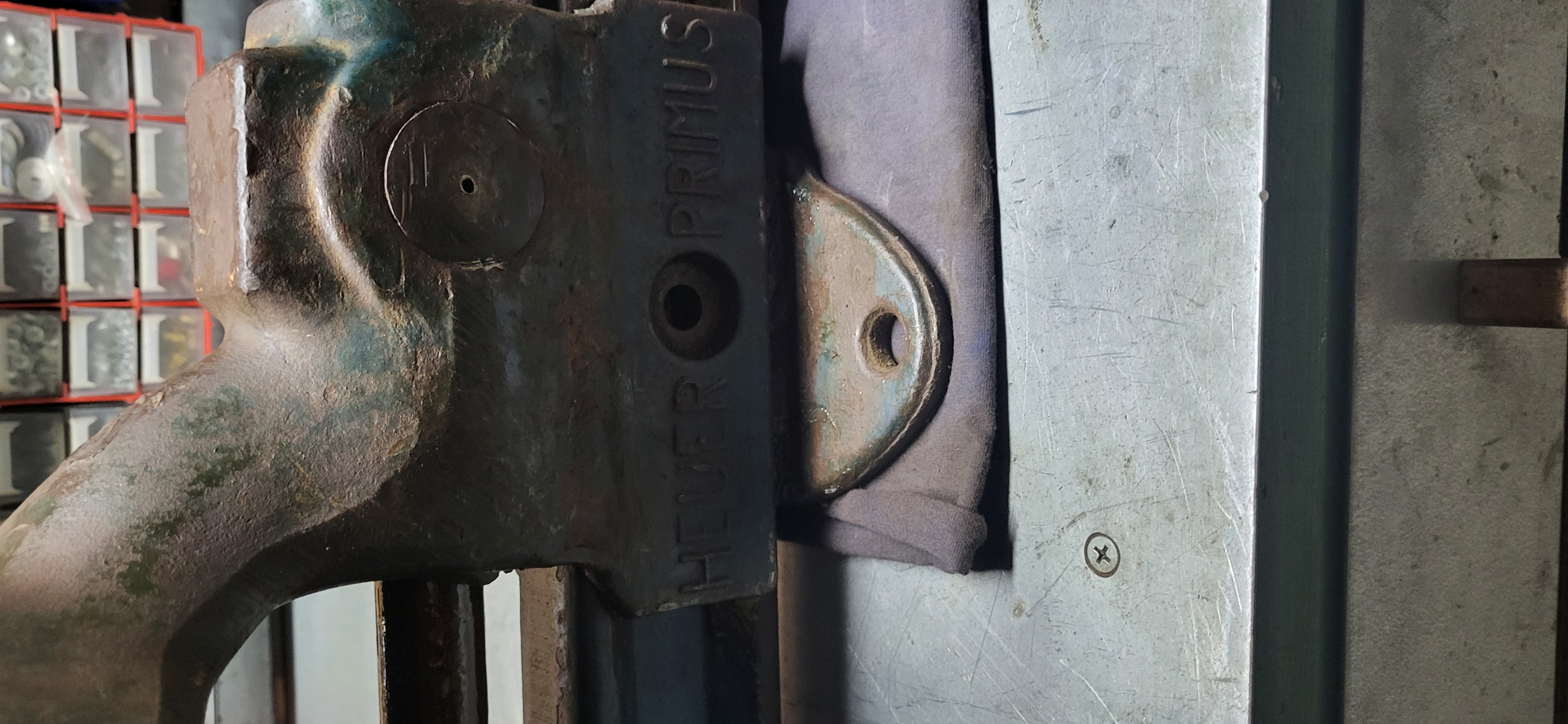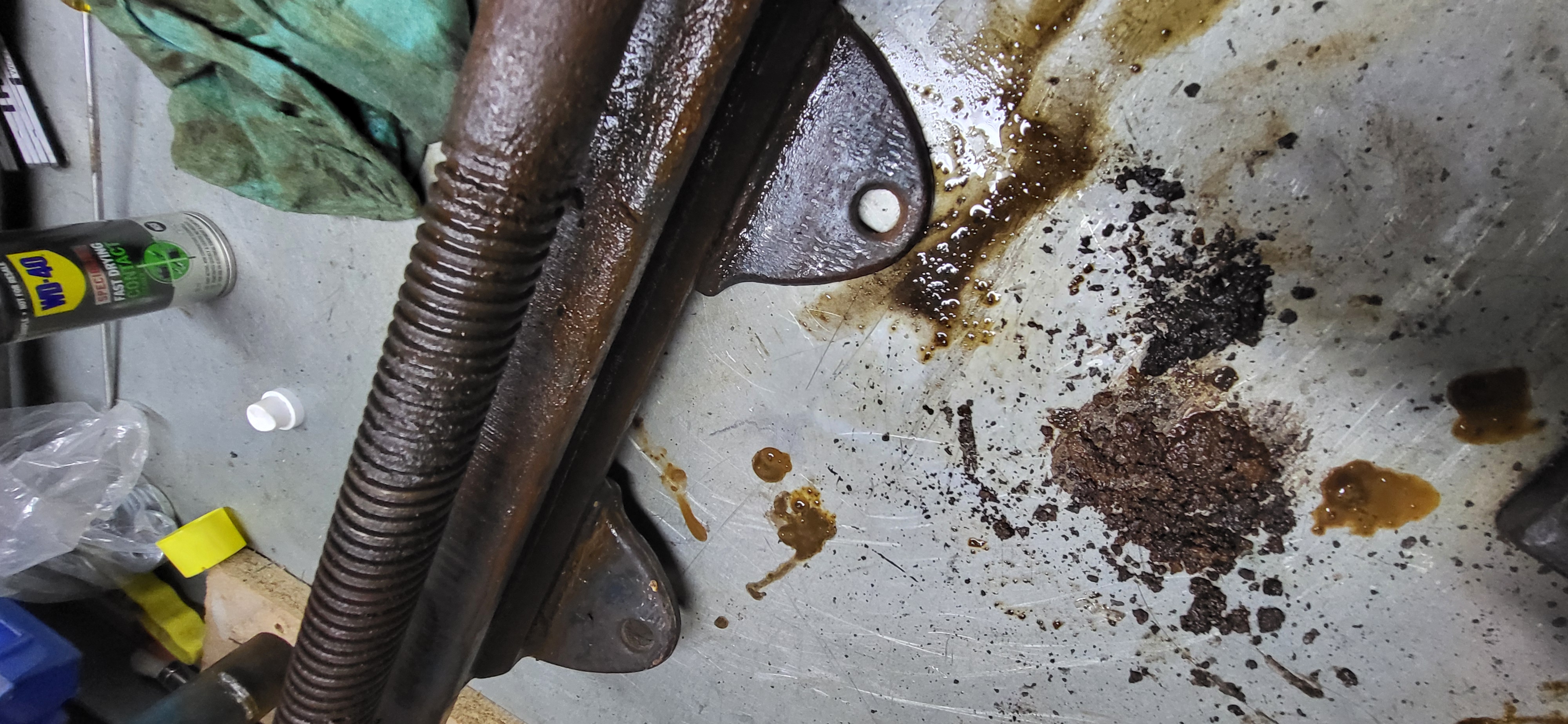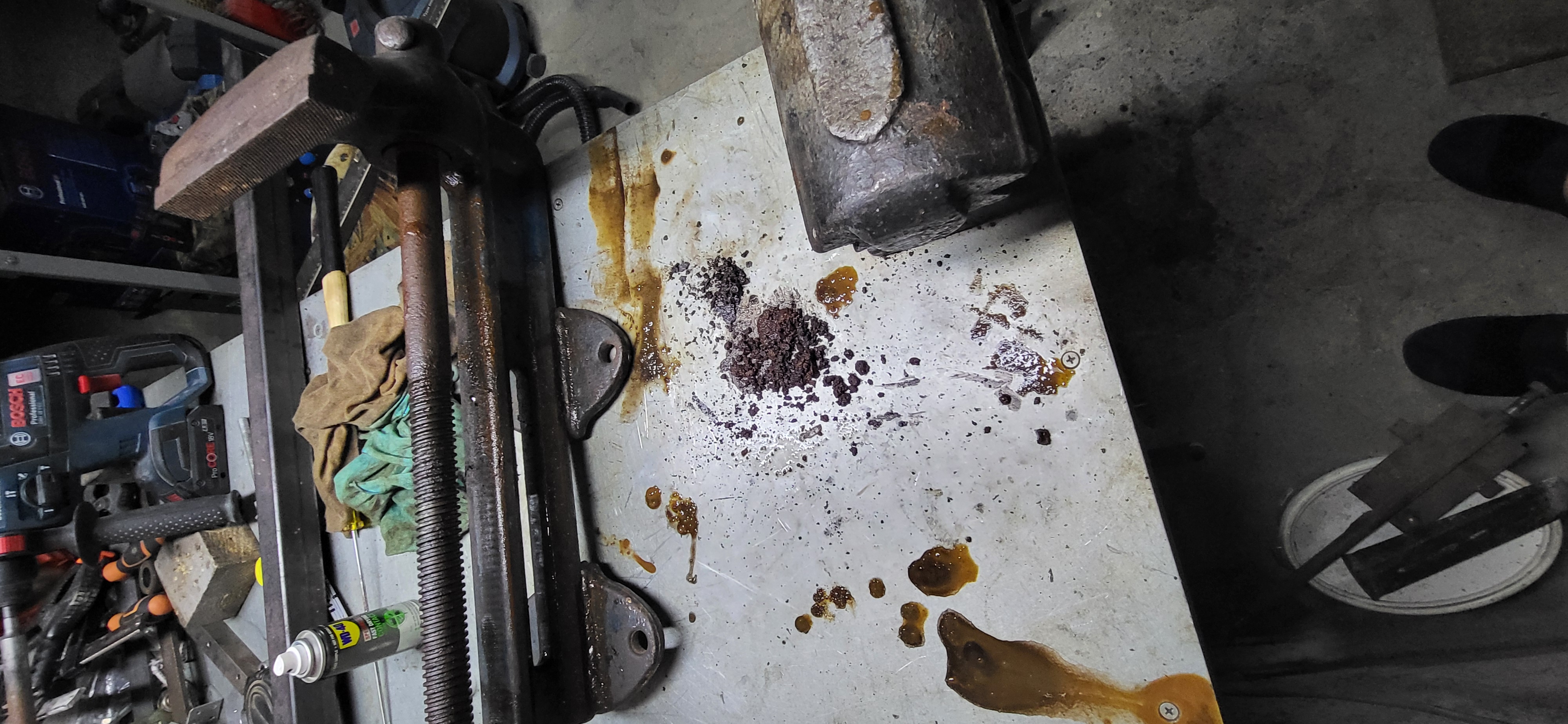Am primit o menghină veche robustă de la un prieten,pe care a vrut să le ducă la fier vechi,pentru că a fost întepenit filetul principal cu manivelă!Se văd si în poze cătă rugină si murdărie s-a acumulat cu trecerea timpului.Dar cu ajutorul WD40 de mai multe tipuri(wd40 contact,wd40 universal) injectat lăngă ax în locasuri foarte mici si cu ajutorul unui arzător de faz am reusit să o desfac!Si pe urmă slefuire si vopsirea exterioară cum apare în ultina poză pridusul final functionează perfect!!