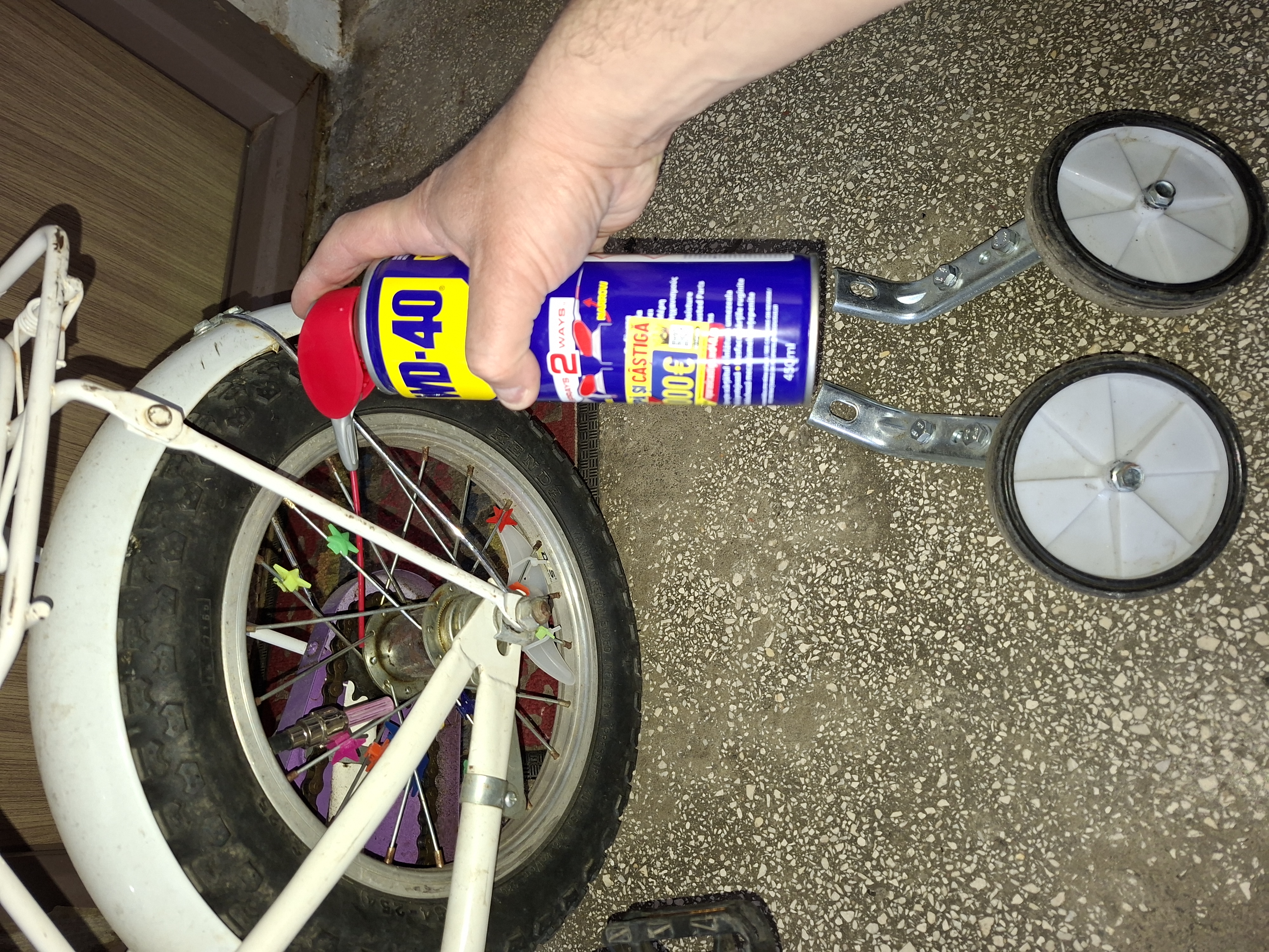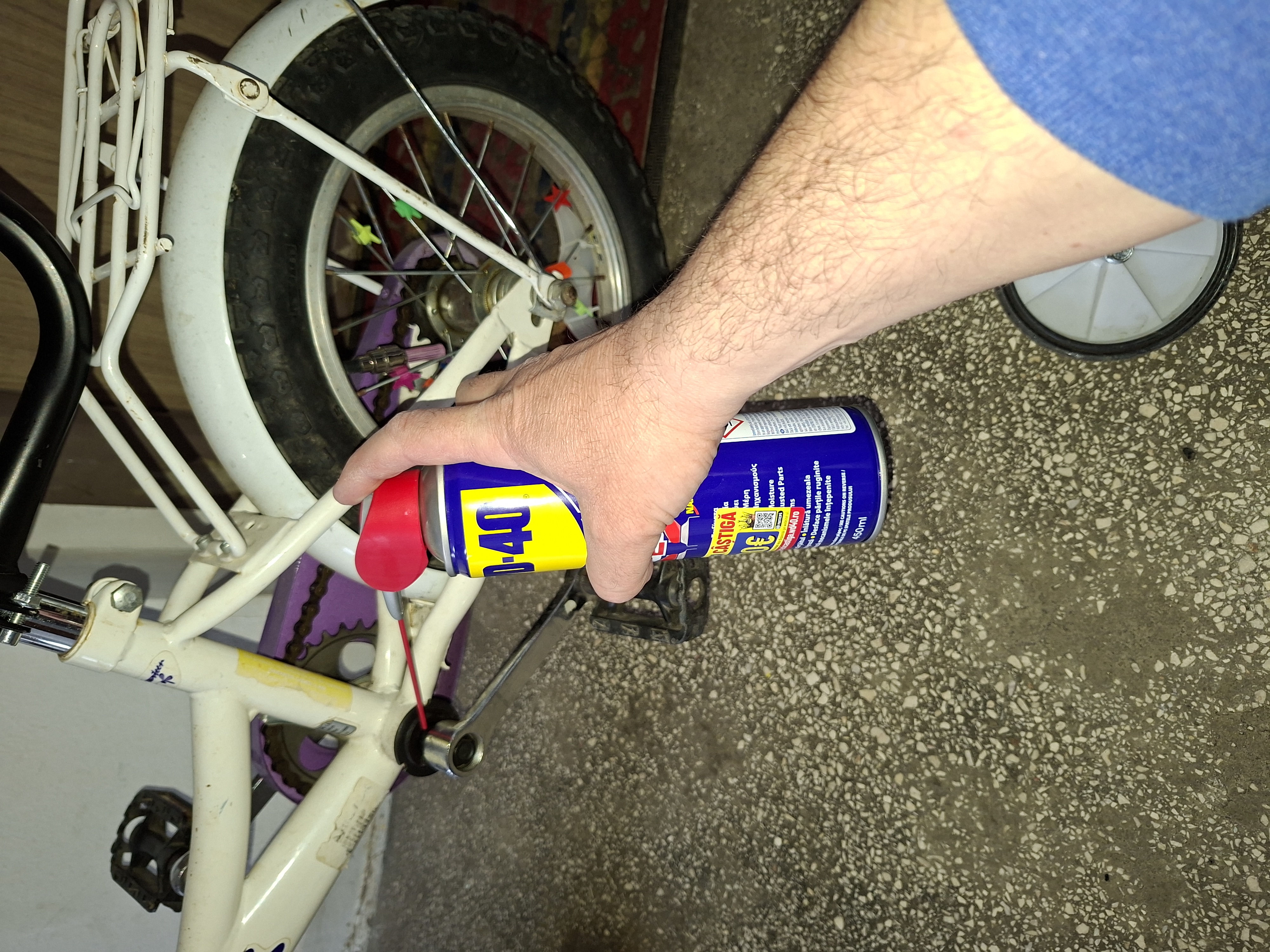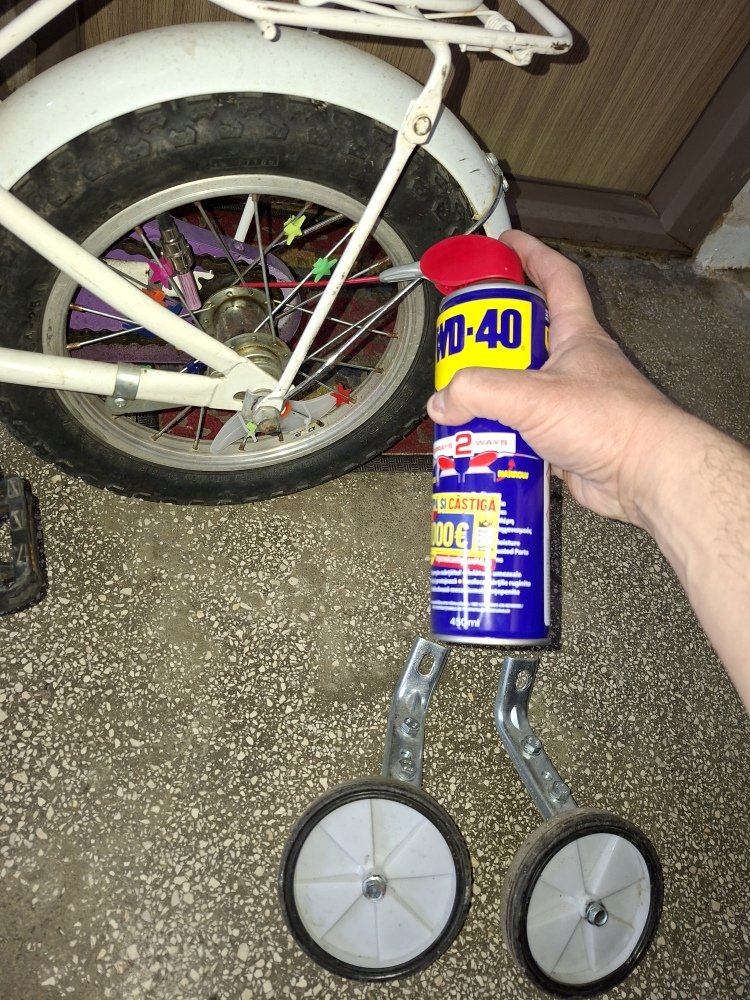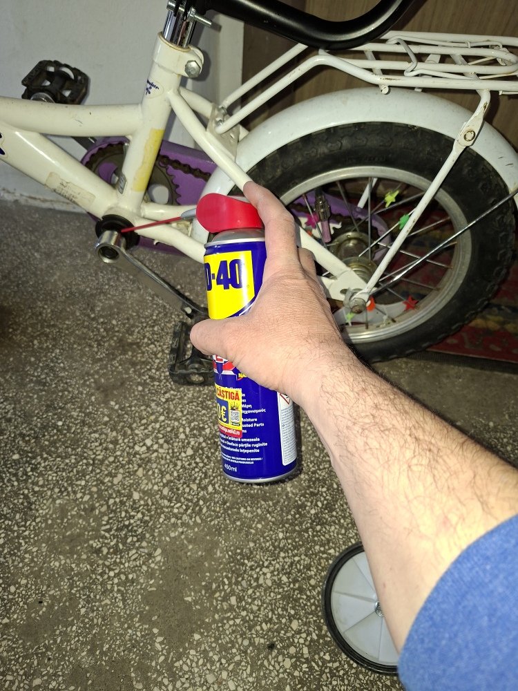 Cu ajutorul WD40 bicicleta fetitei merge brici, foarte usor si silentios