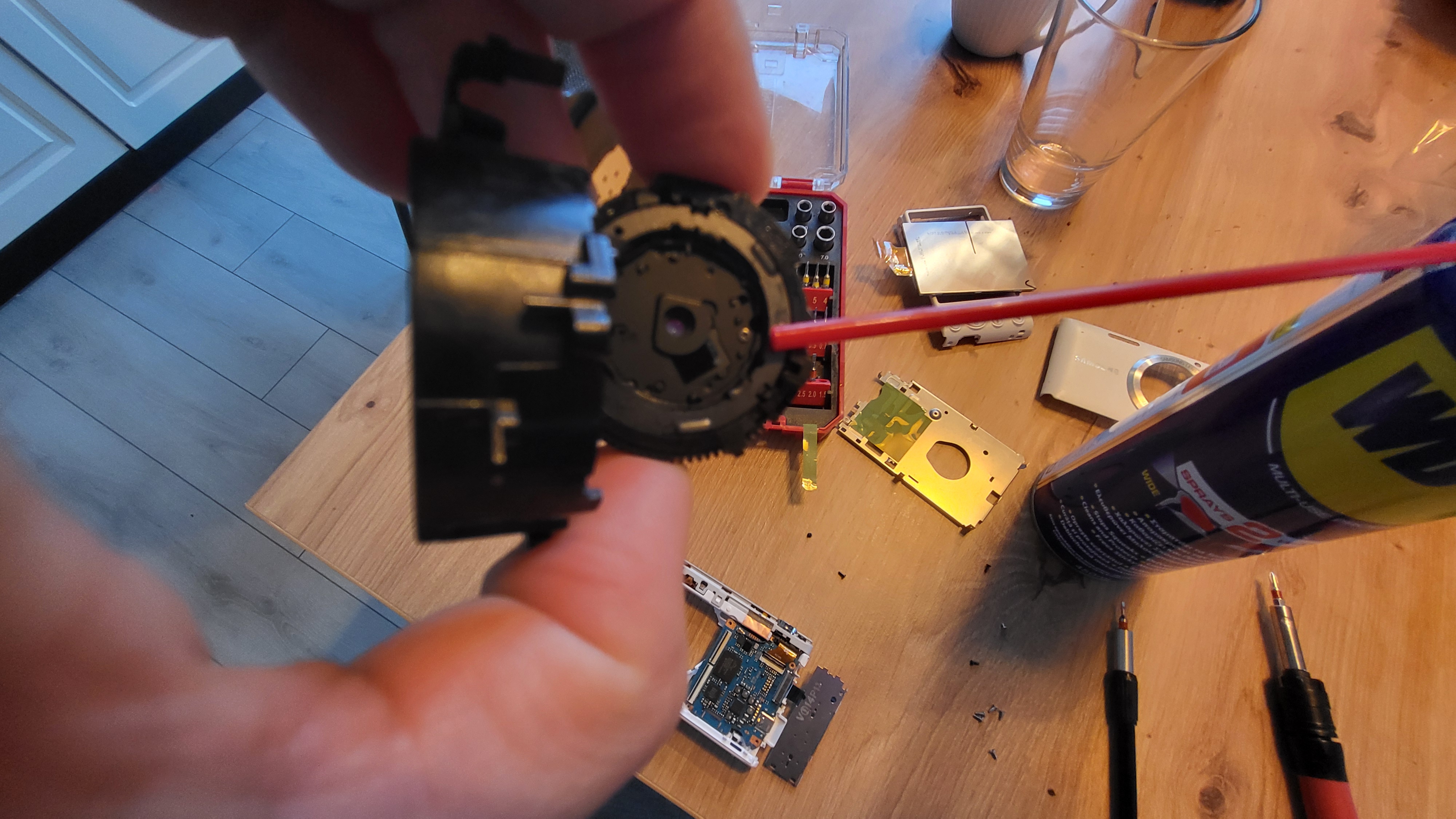 Lentila aparat foto Samsung ramasa blocată. Nimic ce wd40 nu poate sa repare.
